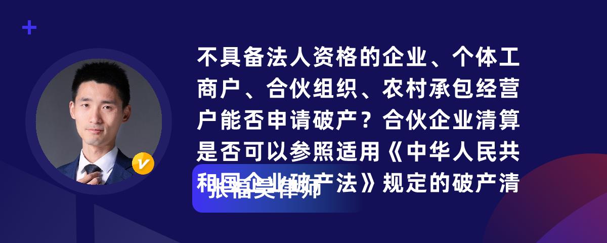 您的位置:首页 > 精选解答 > 公司法 > 不具备法人资格的企业、个体工商户、合伙组织、农村承包经营户能否申请破产?合伙企业清算是否可以参照适用《中华人民共和国企业破产法》规定的破产清算程序?个人独资企业清算是否可以参照适用《中华人民共和国企业破产法》规定的破产清算程序?