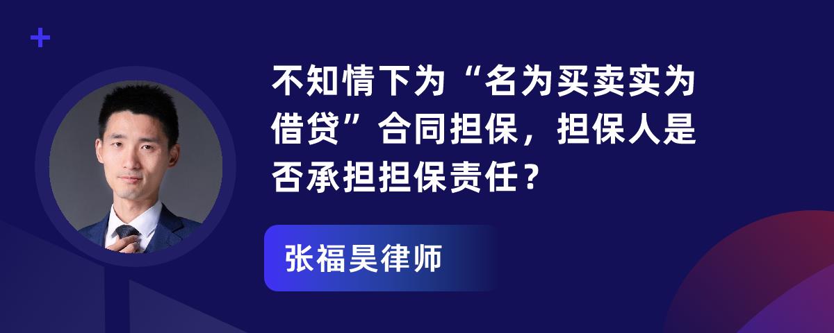 您的位置:首页 > 精选解答 > 公司法 > 不知情下为“名为买卖实为借贷”合同担保,担保人是否承担担保责任?