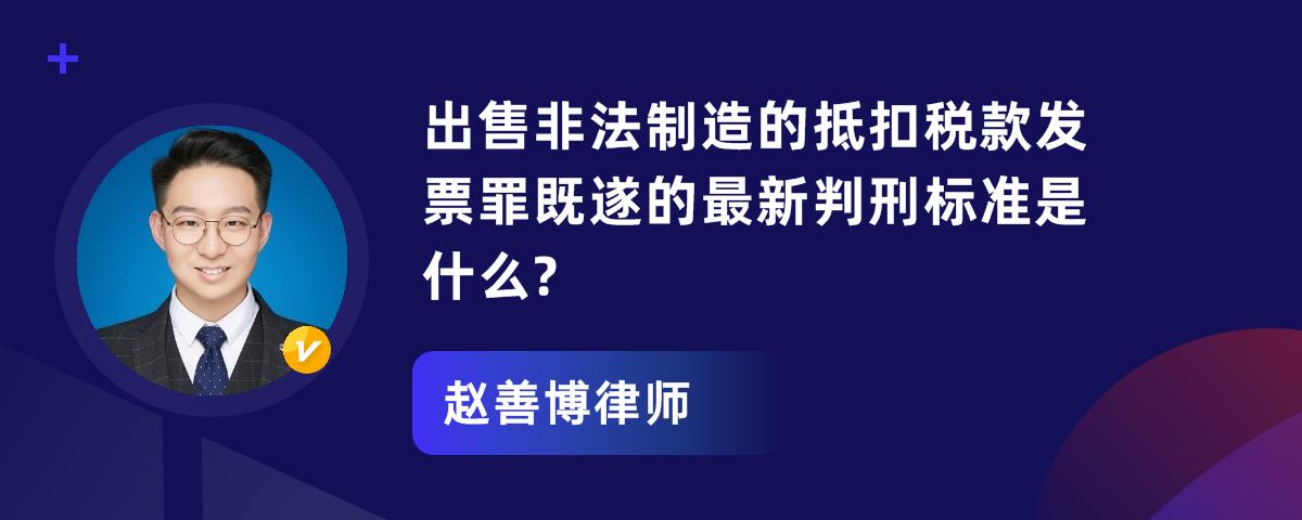 您的位置:首页 > 精选解答 > 刑事辩护 > 出售非法制造的抵扣税款发票罪既遂的最新判刑标准是什么?