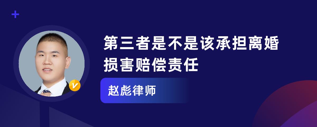 1、第三者是不应承担离婚损害赔偿责任的。2、有下列情形之一,导致离婚的,夫妻双方中的无过错方有权请求过错方对其进行赔偿:一方有重婚行为;一方与他人同居行为;一方实施家庭暴力行为;一方虐待或遗弃家庭成员;有其他重大过错行为等。