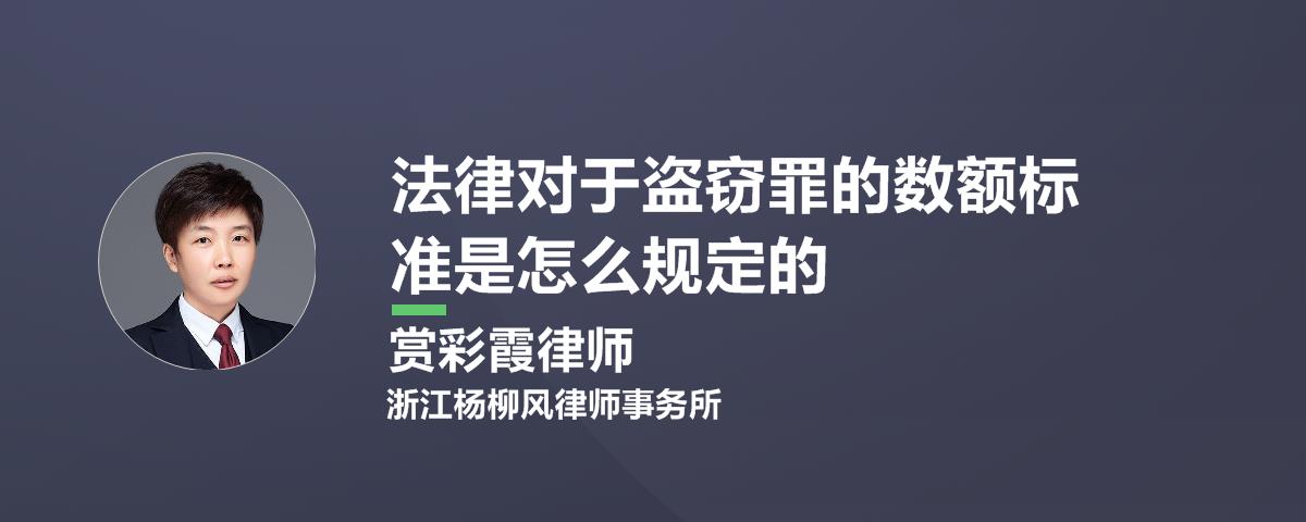 盗窃罪的数额标准如下:一、个人盗窃公私财物价值人民币1000元至3000元以上的,为“数额较大”。二、个人盗窃公私财物价值人民币3万元至10万元以上的,为“数额巨大”等。