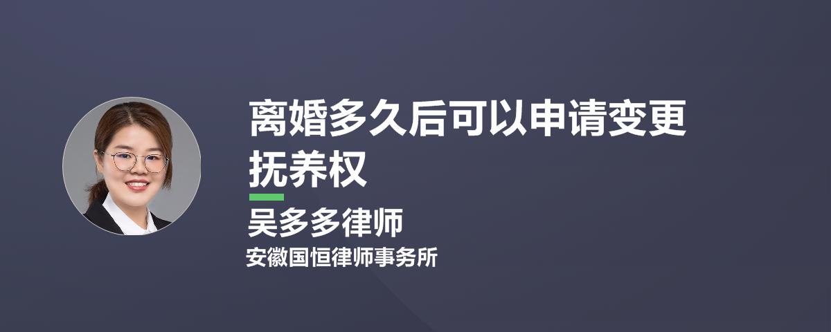 您的位置:首页 > 精选解答 > 婚姻家庭 > 离婚多久后可以申请变更抚养权