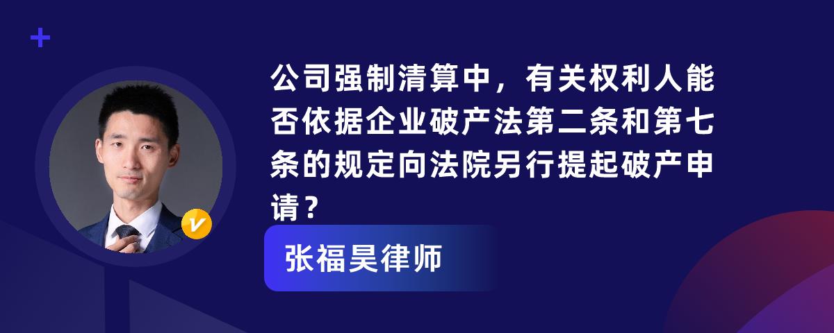 您的位置:首页 > 精选解答 > 公司法 > 公司强制清算中,有关权利人能否依据企业破产法第二条和第七条的规定向法院另行提起破产申请?