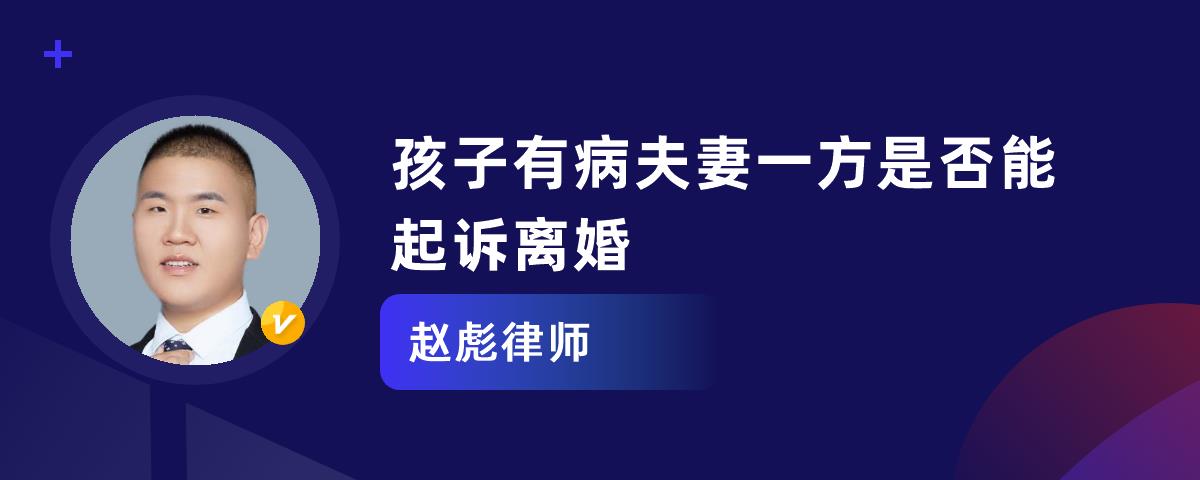 1、孩子有病夫妻一方可以起诉离婚。孩子有病与夫妻是否可以起诉离婚没有直接的必然关系。法律上规定,只要夫妻一方要求离婚的,就可以直接向人民法院提起离婚诉讼。2、夫妻一方要求离婚的,可以由有关组织进行调解或者直接向人民法院提起离婚诉讼。