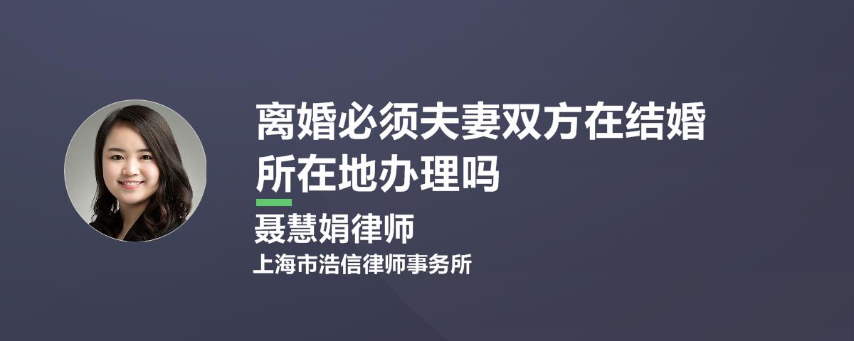 离婚不是必须在结婚所在地办理。男女双方办理离婚手续可以到其中任意一方户籍所在地民政部门申请办理的,而不是一定要在领取结婚证的地方进行办理。若公民在异地居住满一年以上的情况下,公民还可以异地申请诉讼离婚。
