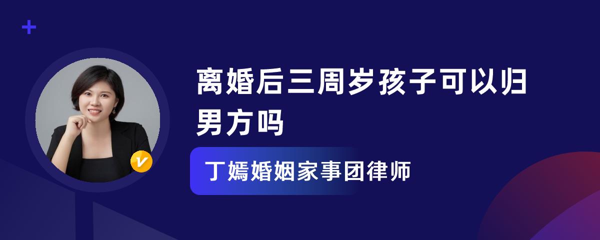 1、离婚后三周岁的孩子可以归男方,但是必须满足一些条件才可以。