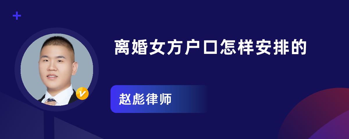 女方离婚户口这样处理:1、直接分立户口,即女方可持现户口簿和法院的判决书或调解书到当地公安派出所办理分户手续,单独持一个户口本。2、迁出,即女方持现户口薄、法院的判决或调解书等材料,到当地公安局户籍管理科填写户口迁移证,再带户口迁移证到将要落户地的公安机关办理落户手续。3、不迁出,可以继续留在男方处。