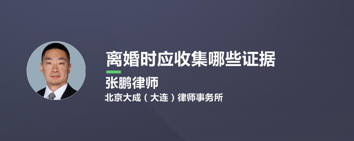 离婚时应收集的证据有:1.证明夫妻关系已实际消亡的证据,如一方有暴力行为、不履行抚育义务等;2.婚姻存续期间共有财产的数额、范围的证据;3.财产分割的理由,如其对家庭的贡献及作出的牺牲等。