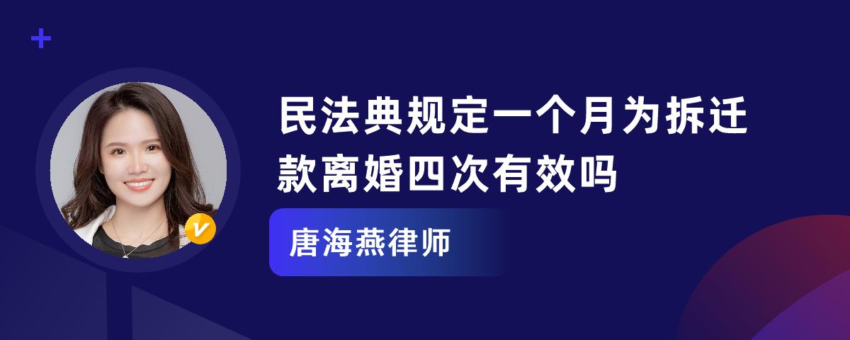 一个月为了拆迁款离婚四次有效。我国《民法典》第一千零七十八条规定:男女双方自愿离婚的,准予离婚。双方必须到婚姻登记机关申请离婚。婚姻登记机关查明双方确实是自愿并对子女和财产问题已有适当处理时,发给离婚证。