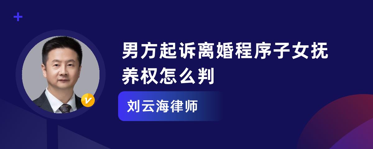 男方起诉离婚子女抚养权,法院会根据“有利于子女健康成长”的原则来判,一般来说,不满两周岁的,以由母亲直接抚养为原则;已满两周岁的子女,父母双方对抚养问题协议不成的,由人民法院根据双方的具体情况,按照最有利于未成年子女的原则判决。