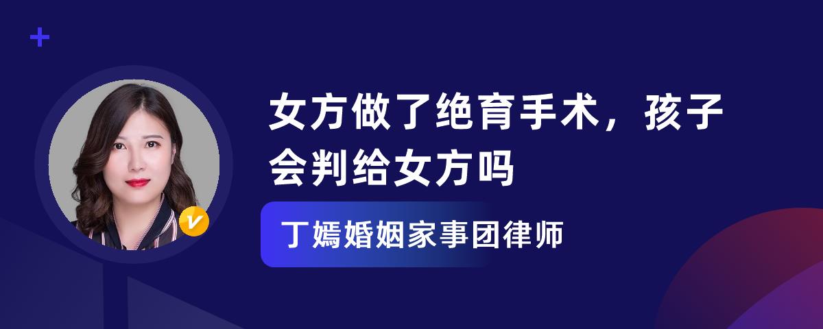 您的位置:首页 > 精选解答 > 婚姻家庭 > 女方做了绝育手术,孩子会判给女方吗