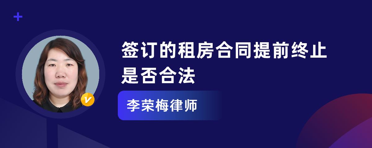 合同双方当事人协商一致的,提前终止签订的租房合同合法。此外,如果合同约定的解除情形发生,或发生法定解除情形的,也可以提前终止合同。如果当事人无正当理由单方终止合同的,需要承担违约责任。
