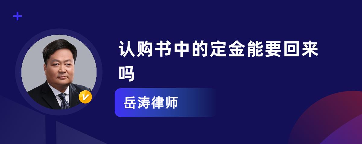 签订认购书的定金,可以退。如果交付定金的当事人按照约定履行义务的,购房定金可以退或者抵作价款;或者收取定金的一方违约的,定金还可以双倍退还给当事人。开发商不退定金双方可以先进行协商的,同时可以申请仲裁或者向法院起诉。定金是房屋买受人确定房屋后给卖房人支付的一笔费用,如果按合同约定履行合同,定金会抵作价款。如果卖方违约导致合同目的不能实现,买房人是可以要求对方双倍返还定金的。