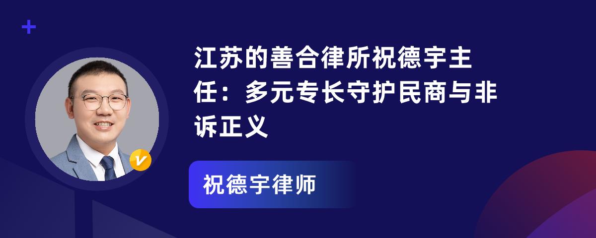 祝德宇律师是江苏善合律师事务所主任律师,毕业于南京陆军指挥学院法律专业等,拥有多项专业证书,还担任多家企业及机关单位法律顾问。他在民商与非诉、诉讼业务方面能力卓越,凭借专业为合作单位构建法律风险防控体系,助力委托人赢得疑难案件。通过多起案例能看出其专业能力,未来他将继续为更多人提供优质法律服务。