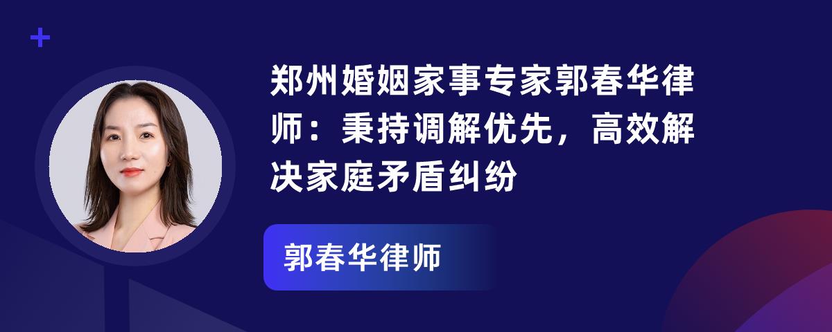 1. 郭春华是郑州法律界婚姻家事领域的律师,秉持“法律为基、情感为桥”理念。2. 专业领域广,涵盖复杂离婚诉讼、子女权益保护、家族财富传承等,提供全流程定制方案。3. 执业亮点多,胜诉率高、擅解复杂纠纷,调解成功率达80%,还有“法律 + 心理”双维服务。4. 热衷公益普法,担任法律顾问、输出法律干货。5. 服务重修复家庭关系,为众多家庭提供优质服务。
