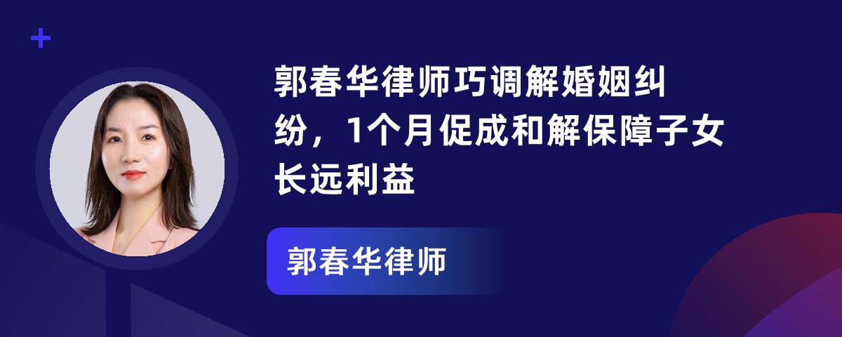 1. 在抚养权争夺案中,郭春华律师围绕“子女利益优先”,为被告锁定抚养权,保障子女教育稳定。2. “婚前车辆婚后过户出售”财产分割案,她收集证据,明确财产处分合法,守住当事人财产权益。3. 企业债务追偿案,她举证隔离个人与企业债务。4. 离婚调解案,她 1 个月促成和解,实现“维权 + 子女保障”。郭律师坚守理念,是婚姻家事领域专业律师。
