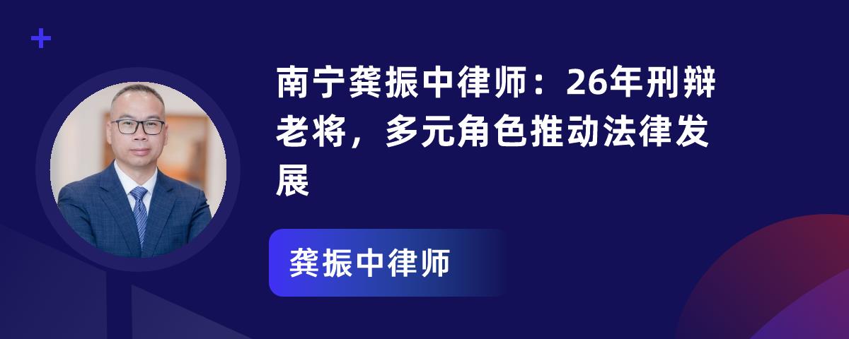 龚振中律师是刑事辩护领域的杰出代表,执业26年为当事人合法权益奔走。他学识深厚,有丰富学术经历,获广西刑事专业律师资格。他经验丰富,办理指导超千件刑事案件,多个成功案例展现精准分析和辩护技巧。他注重理论研究,发布多部专著和文章。他荣誉众多,获行业广泛认可,未来将继续为公平正义贡献力量。