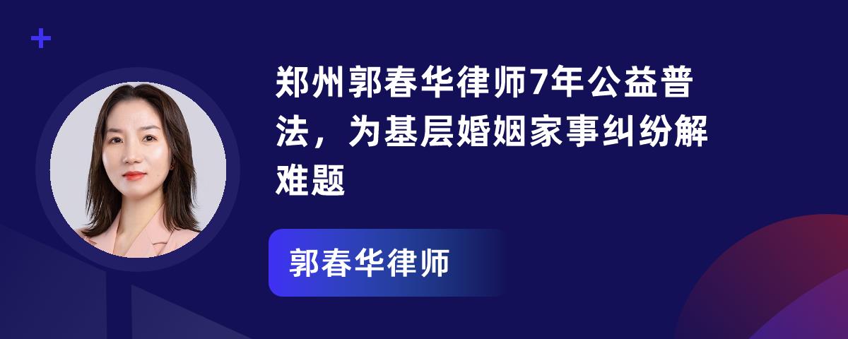 1. 郭春华律师深耕河南郑州婚姻家事法律领域,秉持“法律为基、情感为桥”理念。2. 她提供“全流程、定制化”方案,涵盖复杂离婚诉讼、子女权益保护、家族财富传承等。3. 执业亮点多,胜诉率高,擅长复杂财产处理,调解成功率达80%,还有“法律 + 心理”双维服务。4. 积极参与公益普法,助力基层法治。她致力于修复家庭关系,值得有需求者寻求帮助。