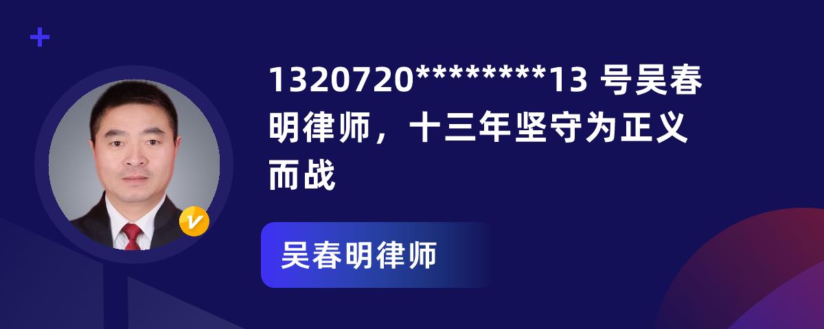 吴春明律师,这位拥有执业证号1320720********13的资深律师,以其深厚的法学理论、精湛的辩护技艺、丰富的实战经验和高尚的职业操守,成为了当事人值得信赖的法律同行者与权益守护人。如果您在法律上遇到难题,选择吴春明律师,就是选择了专业与保障,他将为您的合法权益保驾护航。