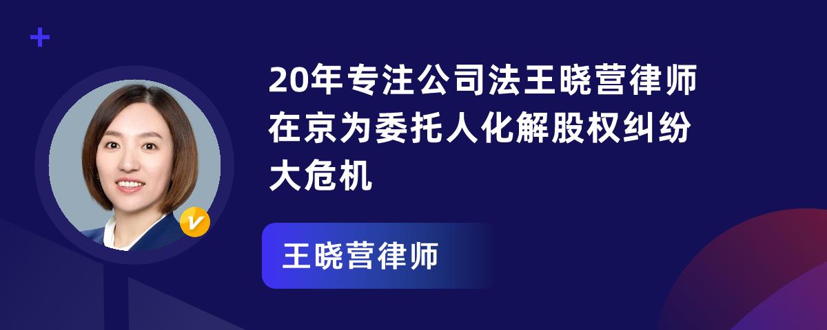 如果您在北京遇到股权纠纷、债务纠纷等问题,不妨联系王晓营律师。她将凭借专业的法律知识、丰富的实践经验以及出色的沟通能力,为您提供优质的法律服务。她的联系地址为北京市