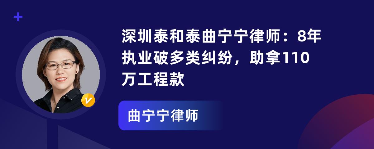 深圳充满活力与挑战,法律问题如暗礁。曲宁宁律师是经验丰富的“领航员”,在泰和泰(深圳)律师事务所为客户排忧解难。她专业背景深厚,擅长多领域法律事务。执业中处理大量案件,成功案例众多,像劳动纠纷、金融借款纠纷等,都帮企业节省成本、获有利结果。遇到法律问题,可联系她团队。