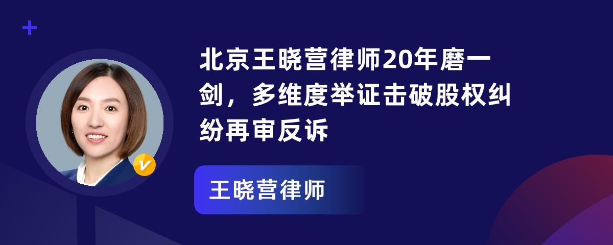 1. 王晓营律师是北京市京师律所律师,有20年执业经验。她专业素养深厚,教育背景出色,担任多个重要职务。2. 她专注股权纠纷20年,擅长处理各类股东争议诉讼,成功代理多起案件。她还总结实用经验,如公司设立、委托代持、公司解散等方面。3. 她有行业贡献,著有多部作品,活跃于媒体。在一股权纠纷再审案中,她助力五股东胜诉,驳回投资公司反诉。