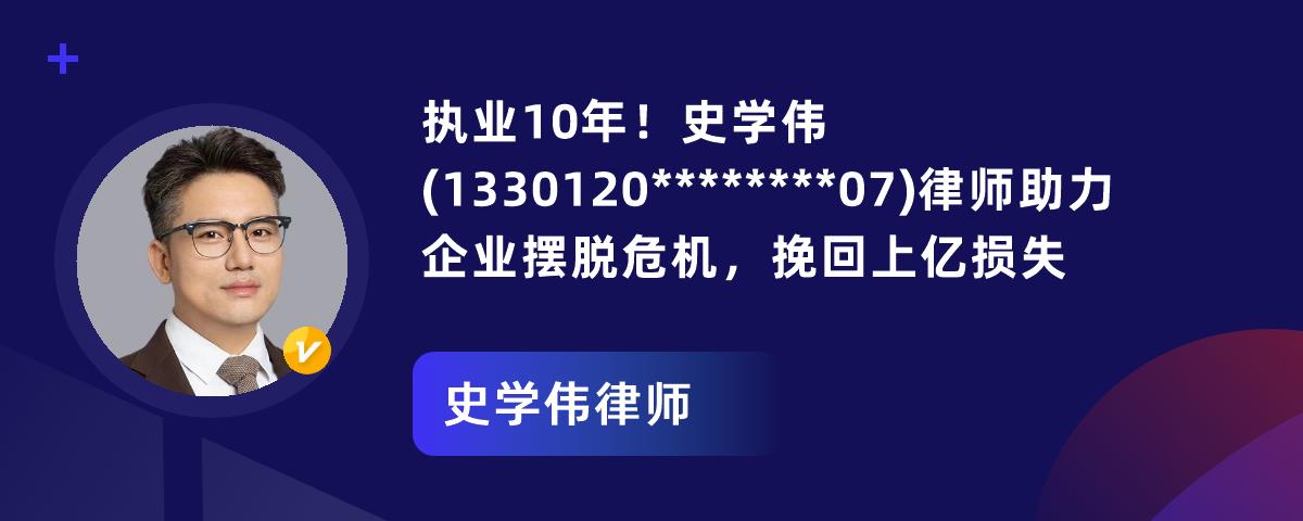 执业10年!史学伟(1330120********07)律师助力企业摆脱危机,挽回上亿损失