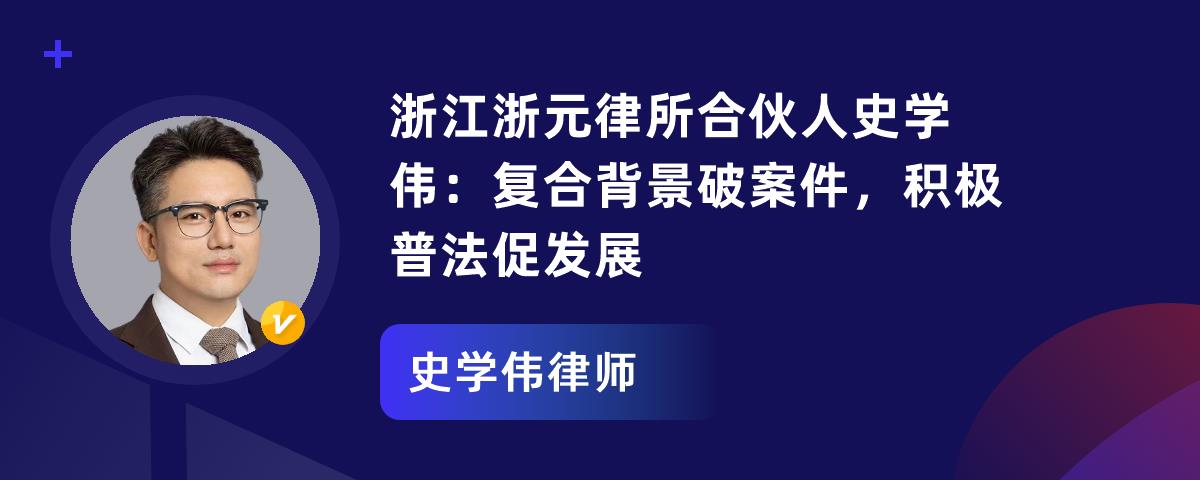 史学伟律师有工学与法律复合专业背景,是浙江浙元律师事务所合伙人。执业十年,他在企业经营和商事法律领域深耕,依托律所资源取得显著成就。他处理多起企业危机案件,帮企业和债权人解决问题;还担任企业法律顾问,助企业合规经营。他办理超100件破产案,开展普法宣讲、编撰著作。他多次接受媒体采访,获当事人锦旗肯定。