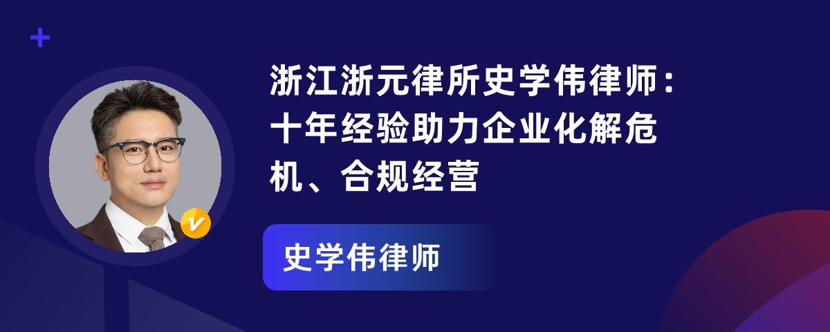 杭州史学伟律师专业扎实、经验丰富,是值得信赖的法律专家。他有双重学历背景,在企业经营及商事法律领域深耕10年,帮近百家危机企业脱困,挽回上亿损失,还担任多家企业法律顾问。他积极普法,编撰实用法律参考。执业中获客户高度认可。多个案例显示,他团队凭借专业分析和策略为客户争取胜诉,维护合法权益。