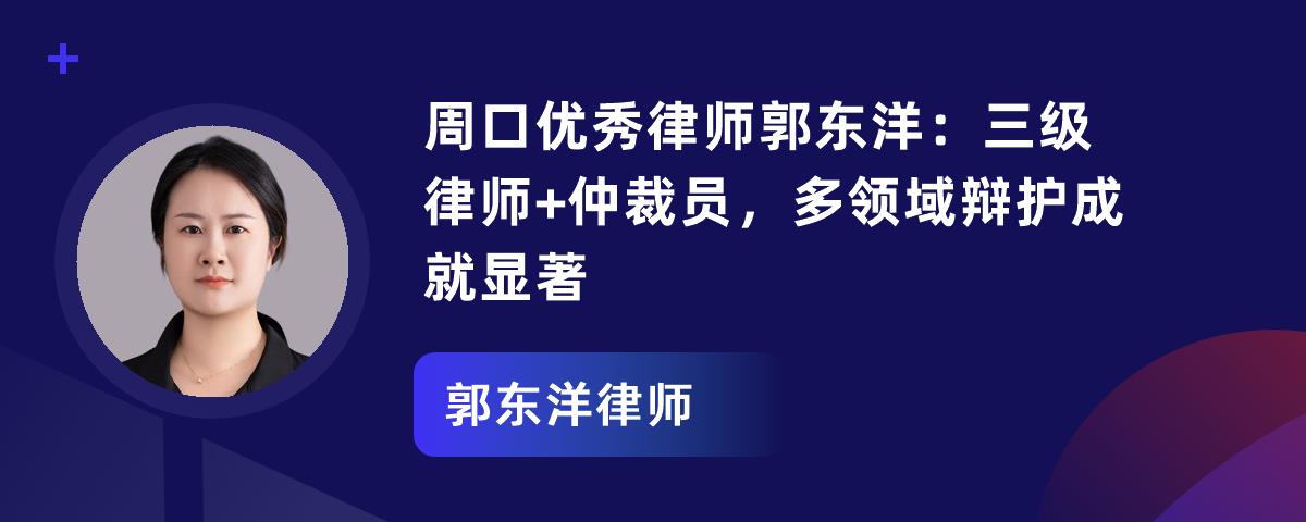 郭东洋律师毕业于北京大学法律专业,是河南天图律所主任、周口市仲裁委员会仲裁员,荣获“周口市优秀律师”等荣誉。她办案特色鲜明,凭借扎实专业功底和卓越能力,秉持“全力以赴、精益求精”理念。从业14年办理几百起案件,涵盖刑事、民事领域,成功案例众多。她坚守底线、积极普法,赢得多方好评。未来将提供更优质法律服务。