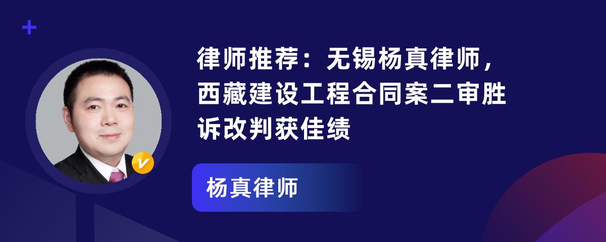 律师推荐:无锡杨真律师,西藏建设工程合同案二审胜诉改判获佳绩