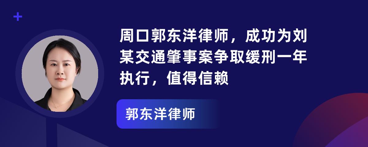 周口郭东洋律师,成功为刘某交通肇事案争取缓刑一年执行,值得信赖