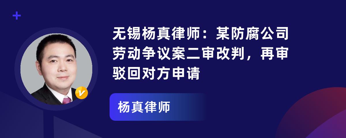 无锡杨真律师:某防腐公司劳动争议案二审改判,再审驳回对方申请