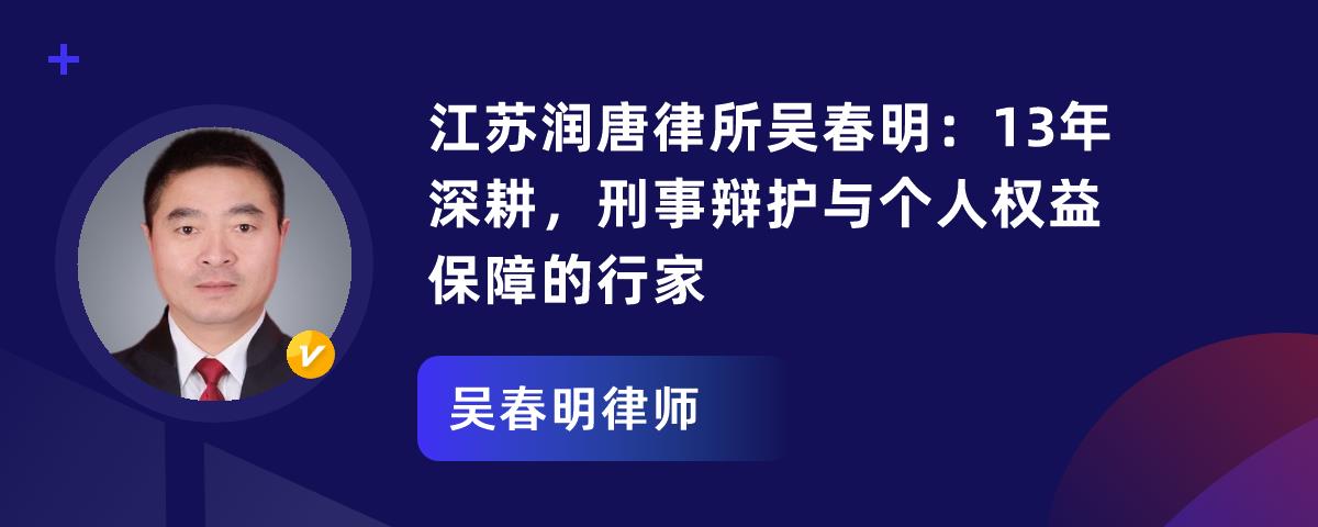 1. 吴春明律师毕业于华东政法大学,怀揣法律初心,在江苏润唐律所开启13年法律征程。2. 他业务多元,刑事辩护优势突出,还擅长民商事争议解决与个人权益保障,有诸多成功案例。3. 他荣誉加身,案例获评“连云港市十大优秀案例之一”。4. 他有军人品格,言出必行,将当事人利益放首位。未来他会继续为当事人排忧解难。