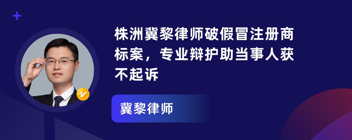 株洲冀黎律师是经验丰富、值得信赖的法律专家。他毕业于中南林业科技大学,从事法律行业二十余年,荣誉众多。案例4中,犯罪嫌疑人谭某某(化名)涉假冒注册商标罪,冀黎律师接受委托后,发现谭某某(化名)有从犯等情节,经沟通,检察院作出不起诉决定。此外,他还办理过诸多成功案例。有法律难题可找他,地址在株洲市天元区天台路桂鑫汇金中心A座21楼。