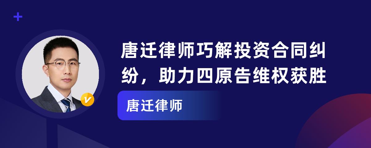 杭州唐迁律师凭借丰富经验和扎实知识,在法律案件中为当事人赢得公正裁决。他曾办理一起投资合同纠纷,四原告因无人售货机项目投资收益未足额支付起诉。唐迁律师先让法院认定四原告主体适格,又精心梳理证据形成完整证据链,还依据原理明确责任主体。处理投资纠纷,要核查合同、固定证据、区分关系。唐迁律师展现了专业素养,未来将继续服务更多当事人。
