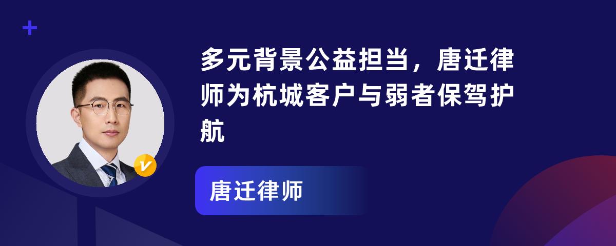 唐迁律师是杭州专业且经验丰富的法律领航者。他毕业于重庆工商大学,有银行从业、企业高管经历,服务中小微企业百余家。他擅长债权债务、合同纠纷等案件。在多起典型案例中,他凭借专业能力为当事人解决难题。他为人真诚、做事严谨,服务获广泛好评。在浙江杭金(杭州和金华)地区遇法律问题,可联系他维权。