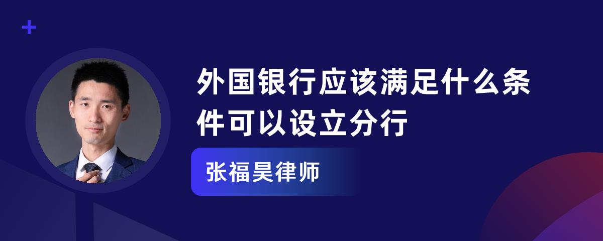 依据我国相关法律的规定,我国商业银行中可以在各地设立分行的,分行由商业银行的总行统一进行管理,那么拟设立分行的外国银行还应具备怎样的条件?下面由华律网小编为读者进行解答,希望以下的知识对读者有所帮助。