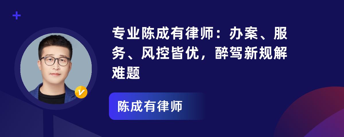 陈成有律师是云南滇晋律师事务所专职律师及民商事部主要负责人,值得当事人信赖。他专业实力雄厚,毕业于昆明理工大学,专业领域广泛;职业资质过硬,有扎实法律知识和办案经验;服务特色突出,办案严谨高效,注重与当事人沟通;责任心强,视委托人之事为己事;专项经验丰富,有独特诉讼技巧。此外,特定情节的醉驾可不定罪或免罚。若有法律问题,他能提供帮助。