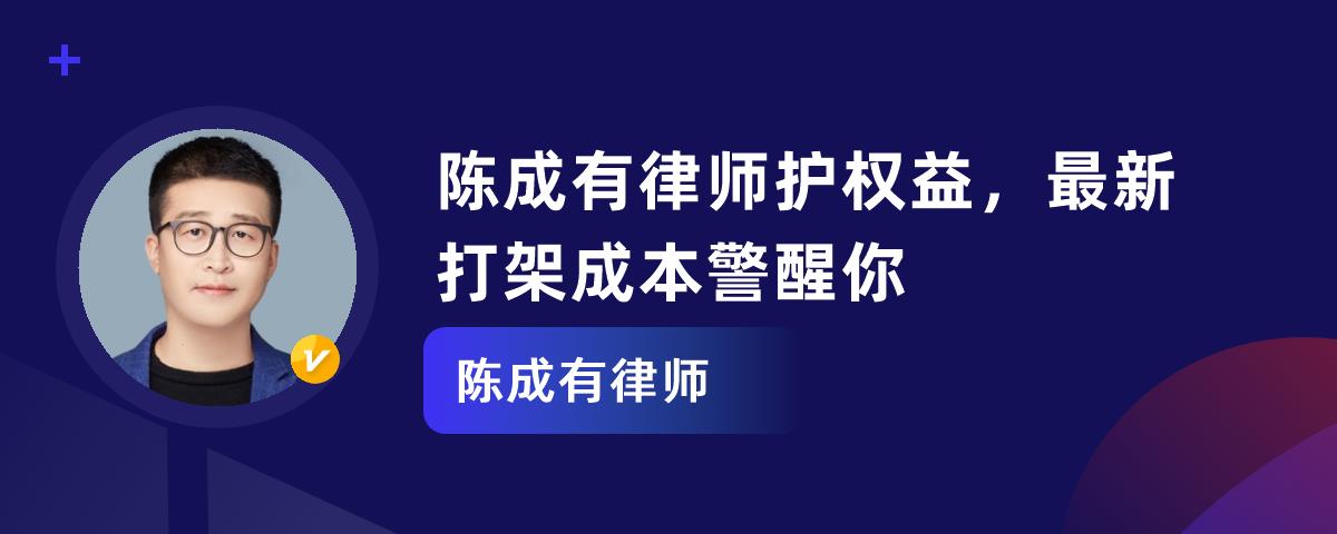 法律领域中,有陈成有律师这样的法律人守护公平,也存在打架成本高的问题。陈成有律师毕业于昆明理工大学,是云南滇晋律所专职律师。他专注多领域,有扎实专业知识、严谨态度和敏捷思维,能为当事人争取最大利益。他还注重提前把控风险。而打架成本沉重,轻微伤、轻伤、重伤的直接成本不同,还有附加成本,会留前科、损名誉等。这提醒我们相信法律,克制冲动,维护社会和谐与法治。