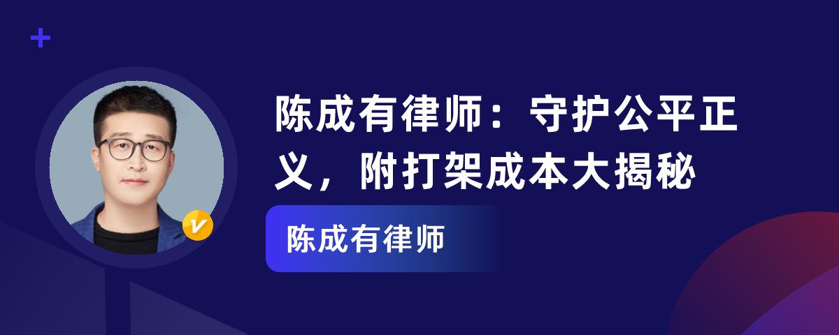 陈成有律师是云南滇晋律师事务所专职律师,担任民商事部主要负责人。他专业领域广,有扎实法律知识和深厚理论功底,办案严谨高效,优质服务赢得信任。他还有前瞻思维,期望为更多人提供服务、维护公平正义。此外,日常生活中我们也要了解法律知识,比如打架成本,轻微伤、轻伤、重伤的打架成本不同,还有附加成本。这都有助于社会和谐稳定,让我们在法治环境中生活得更好。