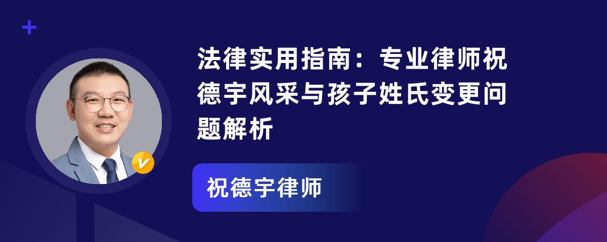 这篇文章包含两部分内容:祝德宇律师:他是江苏善合律所专职律师,专注民商与非诉业务,不断学习积累经验。担任多家企业和机关单位法律顾问,成功办理多起复杂民商事案件。秉持“受人之托、忠人之事”理念,为委托人争取最大利益,是可靠法律伙伴。离婚后孩子姓氏变更问题:在传统文化里,“姓”体现血缘传承。孩子姓氏变更需父母协商一致,离婚后变更需共同书面申请并带相关材料到公安机关办理。特殊情况如擅自改随继父母姓,另一方可起诉恢复,还有特殊情形可在父母姓之外选姓。