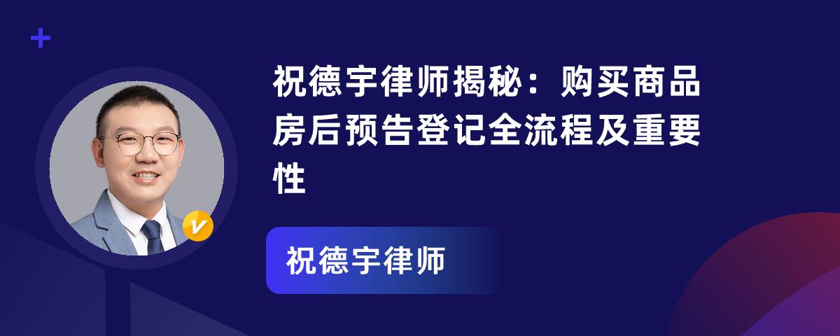 祝德宇律师是江苏善合律所专职律师,在民商与非诉业务领域表现出色。他经验丰富,担任多家企业及机关法律顾问,能提前防范法律风险;办案能力强,成功处理多起大额复杂民商事案件;服务态度诚恳负责,秉持“受人之托、忠人之事”原则,赢得委托人信任。购买商品房后预告登记,申请主体为买卖双方,预购人在特定情况可单方申请。申请需提交不动产登记申请书、身份证明等材料。预告登记可保障买方权益、助借款人获优惠利率,还影响登记优先顺序。