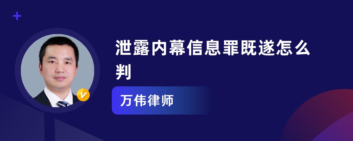 情节严重的,处五年以下的有期徒刑或者拘役,并处或者单处违法所得一倍以上五倍以下罚金。关于泄露内幕信息罪既遂怎么判刑的问题,华律网小编整理以下内容,希望能帮助到大家。需要的拿去!泄露内幕信息罪既遂怎么判刑泄露内幕信息罪既遂的判刑:1、情节严重的,处五年以下的有期徒刑或者拘役,并处或者单处违法所得一倍以上五倍以下罚金;2、情节特别严重的,处五年以上十年以下有期徒刑,并处违...