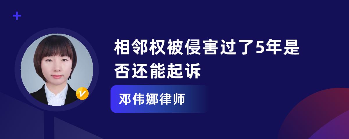 1、相邻权过了5年能起诉。根据《民法典》第二百八十八条、第二百八十九条,相邻权是为自己的不动产使用便宜而对相邻不动产为使用或限制的权利。由于相邻权是物权,而根据法律的规定,物权纠纷是一直持续的侵权行为,所以,是没有诉讼时效的限制的。