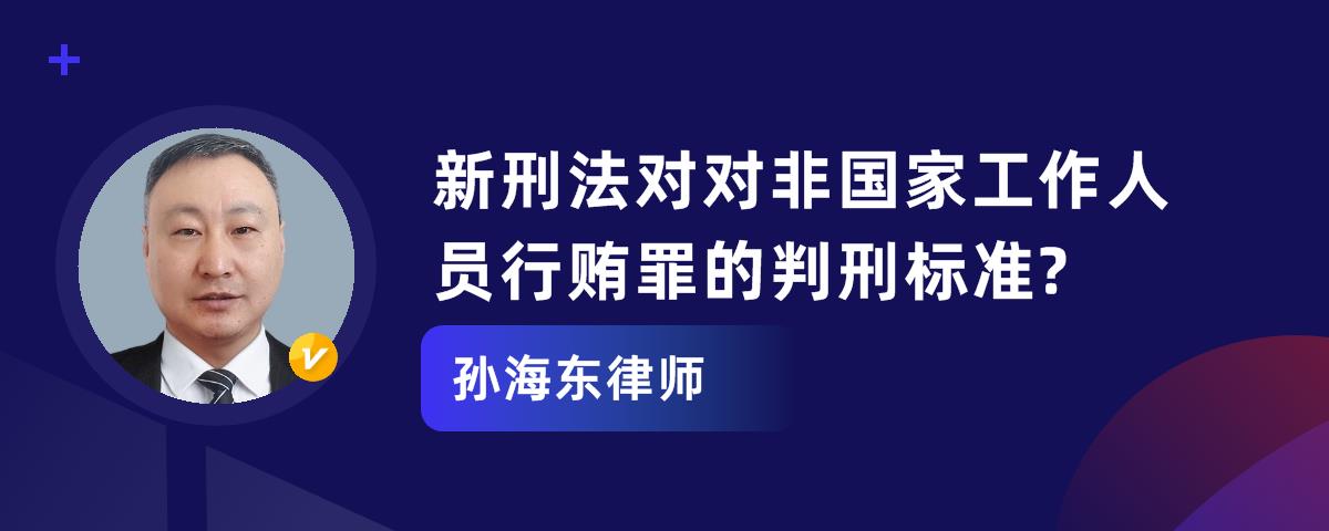 数额较大的,处三年以下有期徒刑或者拘役,并处罚金;数额巨大的,处三年以上十年以下有期徒刑,并处罚金。对非国家工作人员行贿罪是指为谋取不正当利益,数额较大的行为。关于新刑法对对非国家工作人员行贿罪的判刑标准的问题,下面由华律网小编为您详细解答。