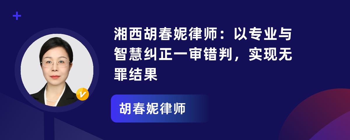 湘西胡春妮律师:以专业与智慧纠正一审错判,实现无罪结果