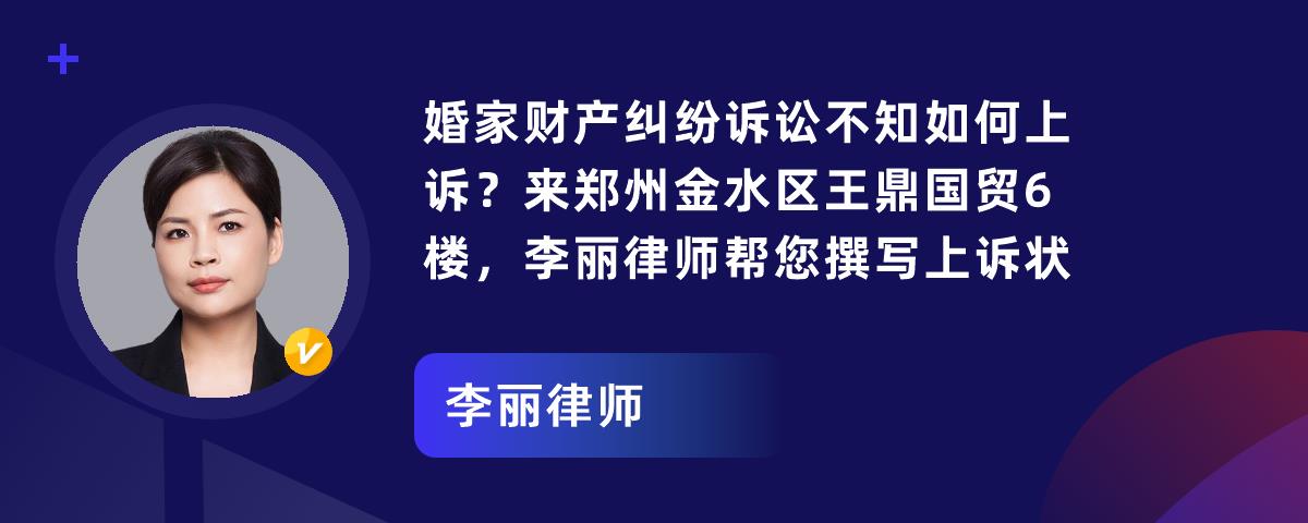 婚家财产纠纷诉讼不知如何上诉?来郑州金水区王鼎国贸6楼,李丽律师帮您撰写上诉状