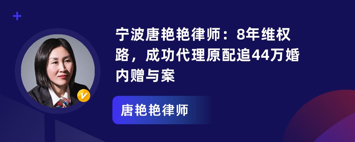 宁波唐艳艳律师:8年维权路,成功代理原配追44万婚内赠与案