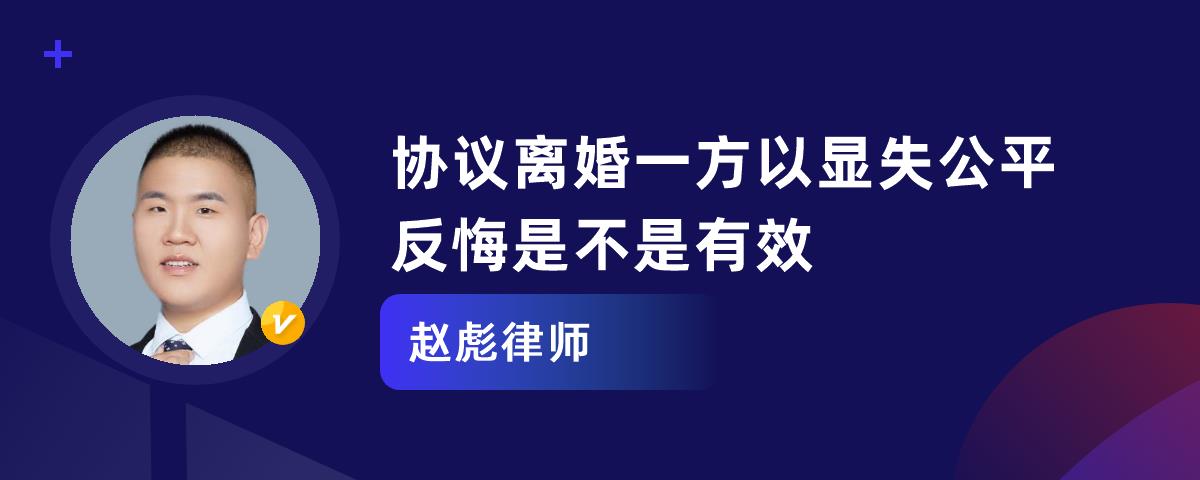 1、协议离婚一方以显失公平反悔一般认定无效,不能获得法院支持。2、当事人对离婚财产分割协议能请求变更或撤销的情形为欺诈、胁迫,显失公平不是撤销离婚财产分割协议的法定事由。